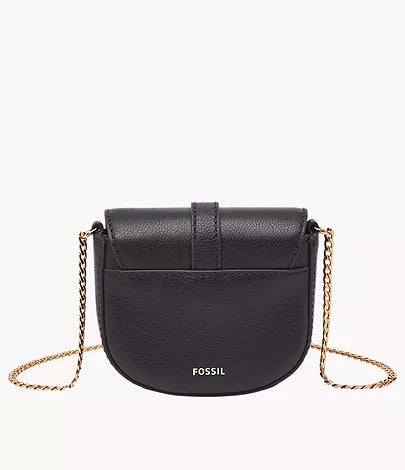 ZB1853001 - Fossil Harwell Black Leather Small Flap Crossbody Bag For Women