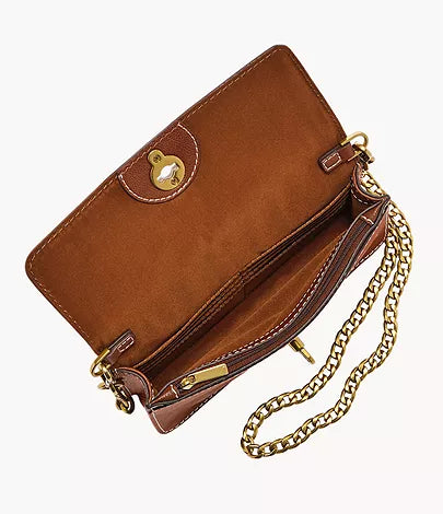 SHB3070210 - Fossil Ainsley Small Brown Leather Flap Crossbody Bag For Women