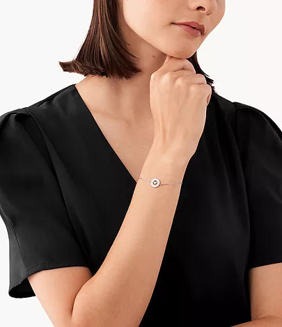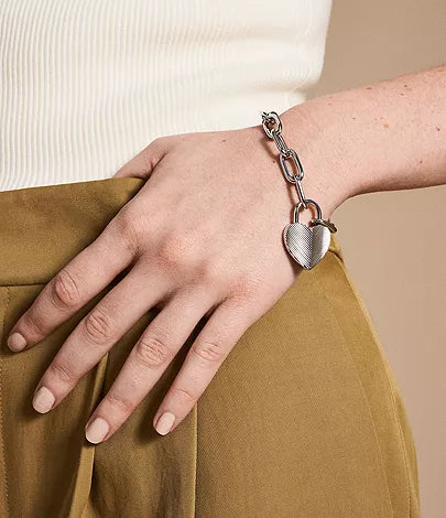 JF04659040 - Fossil Harlow Linear Texture Heart Stainless Steel Station Bracelet For Women