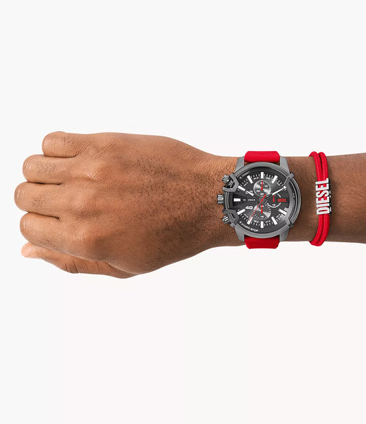 Diesel Griffed Chronograph Red Silicone Watch and Nylon Bracelet Set DZ4673SET