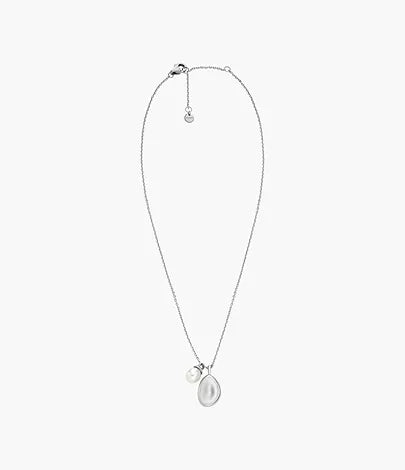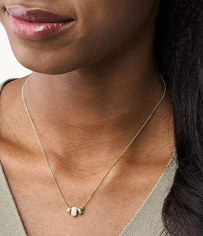 JF03952710-Fossil Georgia Vintage Heritage Mother-of-Pearl Stainless Steel Chain Necklace for Women