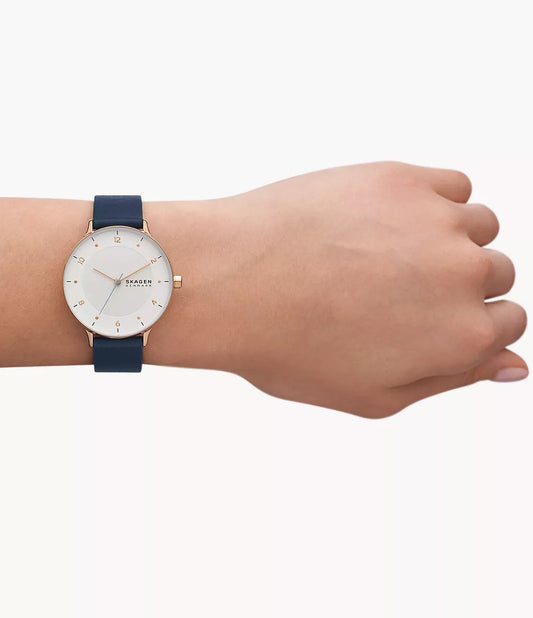 Skagen Riis Three-Hand Blue Leather Watch SKW3090