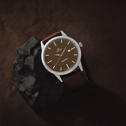 Titan Workwear Brown Dial Analog Leather Strap Watch Men NT1866SL02