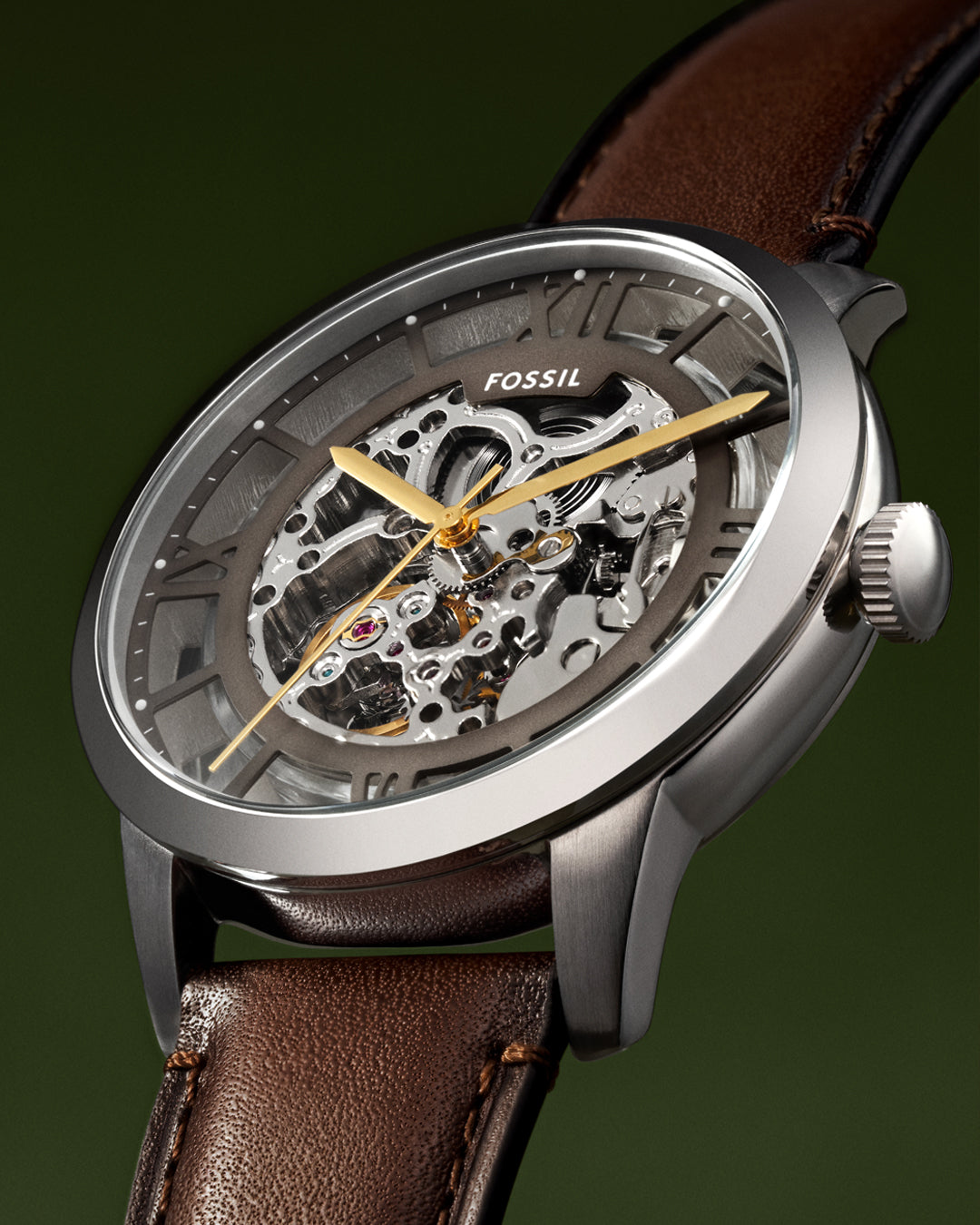 Powered entirely by your movement, this design features over 100 hand-assembled parts and a skeletonized dial showcasing meticulous precision mechanics.